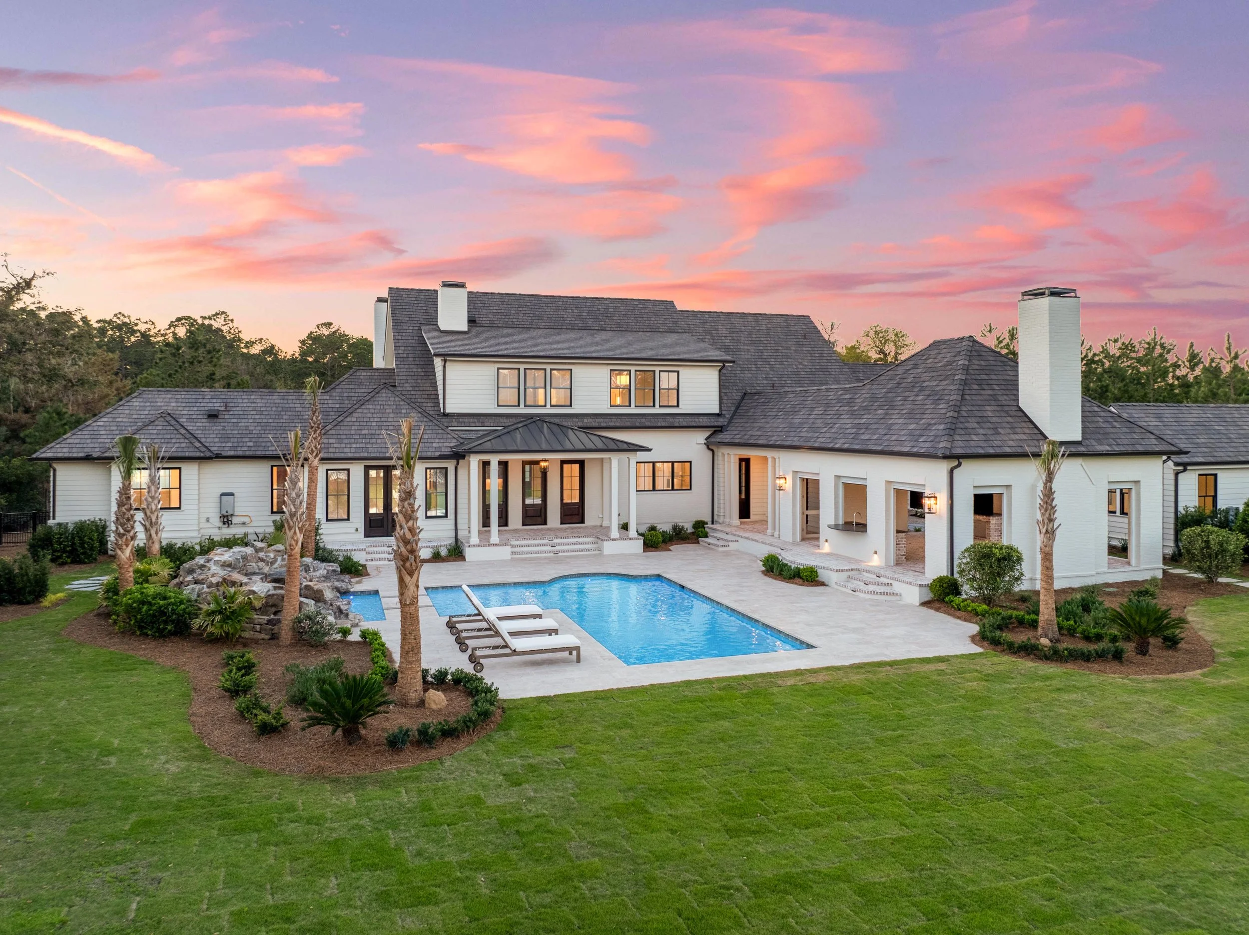 This residence serves as a study in regional adaptation, bridging the gap between traditional coastal classicism and a contemporary interior aesthetic. Situated on a sensitive waterfront site, the design intent was to create a structure that feels both grand in presence and intimate in scale. The primary massing is rooted in regional vernacular, utilizing whitewashed brick and traditional roof lines to anchor the building firmly to the landscape.